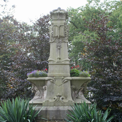Een aan de rand van het Wilhelminapark (Huydecoperwegzijde) geplaatst GEDENKTEKEN bestaande uit een obeliskvormige zuil op een brede uitkragende sokkel, waartegen de west- en oostzijde een plantenbak is gezet. Deze plantenbakken zijn rijkelijk versierd met voluutmotieven, acanthusbladmotieven en meer abstracte krulmotieven die getuigen van invloeden uit de Art Nouveau. Vanaf de plantenbakken verheft de vlakke schacht van de zuil zich verjongend en is versierd met geprofileerde lijsten en krulmotieven. Aan de zijde van de plantenbakken zijn in de schacht de wapenschilden van Nassau en Oranje aangebracht, terwijl aan de straatzijde zich het wapen van Zeist bevindt met daarboven een embleem van het gezag aangegeven door een wetboek. De wapenschilden worden omslingerd door takken met bladeren en vruchten. Aan de achterzijde bevindt zich een duif als symbool voor de vrede. De bekroning bestaat uit een rijks- of koningskroon die is opgebouwd uit acht opengevouwen bladmotieven. Vanuit de hoeken loopt een getoogde rij edelstenen naar het midden, waarop een bolelement is gezet.
