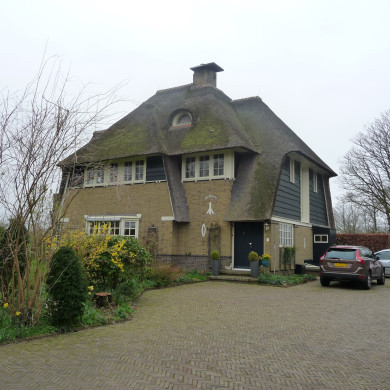 Villa, gebouwd op samengesteld grondplan, bestaande uit twee bouwlagen onder een samengesteld rieten schilddak met overstek. Op de nokken zijn rode vorstpannen aangebracht. De noklijn wordt doorsneden door een rechthoekige bakstenen schoorsteen en loopt evenwijdig aan de Gemeenelandsweg. De oorspronkelijke houten kapconstructie is nog aanwezig. In het dak zijn verschillende dakkapellen met glooiende killen aangebracht.