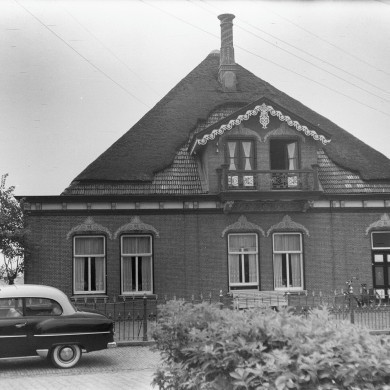 STOLPBOERDERIJ van het Noordhollandse type, gebouwd in 1877 in eclectische trant. De boerderij staat aan de zuidzijde van de weg, met de noklijn haaks hierop, en wordt hiervan gescheiden door een ijzeren HEK op hardstenen voeting. De achter- (Z) en de linkerzijde (O) hebben enige wijzigingen ondergaan, die het monumentale karakter evenwel niet hebben geschaad.