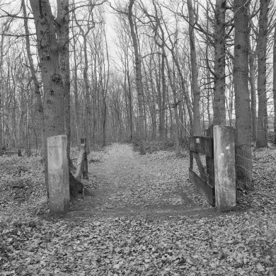 Twee HEKPIJLERS flankeren de toegang tot het zgn. Tjaarda's Bos.