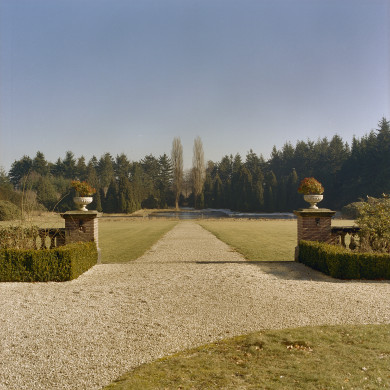 Het feit dat het landhuis hoger is gelegen dan het omliggende terrein, tezamen met de glooiende aanleg aan die zijde, zorgt naar het oosten en zuidoosten voor een magnifiek uitzicht. Aan de oostzijde van het terrein biedt de aanleg zicht op een verkleinde versie van een Grand Canal a la Versailles: een bassin in T-vorm met symmetrische aanplant daarlangs. De grandeur van dit tuingedeelte is nog goed te ervaren.