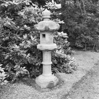 Het pad in de dwars-as sluit in het noordwesten aan op de door Dinn ontworpen deeltuin en vormt hierin de symmetrie-as. Het pad in de hoofdas eindigt in het zuidwesten in het daar gelegen bos en sluit daar aan op het padenstelsel. Bij de overgang staat aan weerszijden van het pad een natuurstenen Japanse lantaarn.
