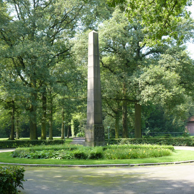 Granieten GEDENKNAALD samengesteld uit acht taps toelopende blokken op een rechte sokkel. De sokkel is aan drie zijden voorzien van reliëfs. Aan twee zijden mensen met attributen van de arbeid, aan de derde twee elkaar groetende mannen. Op de vierde zijde, boven het wapen van Nederland, de inscriptie: "1837 1915", "aan Gerrit Jan van Heek den schenker van dit park uit dankbaarheid gewijd door de ingezetenen van Enschede april 1922".