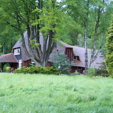 LANDHUIS "Driener Marke" is gebouwd in 1930 naar ontwerp van de architect W. Hamdorff in opdracht van A.M. de Koning. Het huis is ontworpen in Amsterdamse Schoolstijl, gebaseerd op organische vormen, waarbij de constructie ondergeschikt is gemaakt aan de plastiek van de totale vorm.