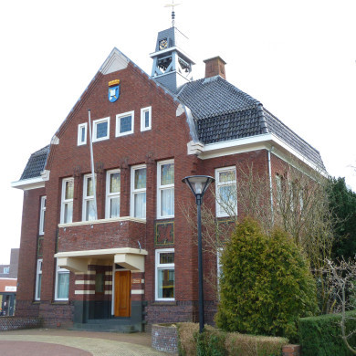 GEMEENTEHUIS in 1927 ontworpen door gemeentearchitect G. Koolhof. Het in een aan het Rationalisme verwante stijl opgetrokken pand had oorspronkelijk een L-vormige plattegrond. In 1975 kwam daar verandering in toen het werd uitgebreid met een nieuwe vleugel onder architectuur van J.C. Nap uit Bedum. De nieuwbouw is twee bouwlagen hoog en sluit qua goothoogte en detaillering aan op het oude deel. De vleugel valt buiten de bescherming van rijkswege. In 1975 is ook het carillon in de dakruiter van het gemeentehuis vervangen door een nieuw.