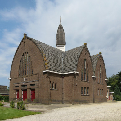 Kerk gebouwd in 1925 in opdracht van de Kerkeraad der Gereformeerde Kerk te Nieuw-Amsterdam, naar ontwerp van W. van Straten met invloed van de Amsterdamse School. In de achtergevel is materiaal van de oude kerk hergebruikt. Het interieur verkeert in oorspronkelijke staat. Opvallend is de typologie van de kerk die de ruimtewerking heeft van een centraalbouw.