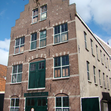 KAASPAKHUIS, genaamd 'DE TOEKOMST', gebouwd omstreeks 1890 in de stijl van de Neo-Renaissance, gelegen in de rooilijn direkt aan de straat aan de noordzijde van de Nieuwe Haven in het beschermde stadsgezicht van Edam. Het kaaspakhuis is via een tussenlid van een bouwlaag verbonden met de panden Voorhaven 25-31. NB: het tussenlid en de panden aan de Voorhaven vallen niet onder de bescherming.