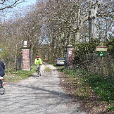 Naar ontwerp van A. de Maaker in 1926 gebouwd TOEGANGSHEK tot het hoofdgebouw van het landgoed Vinkenduin, opgetrokken in een historiserende bouwstijl.