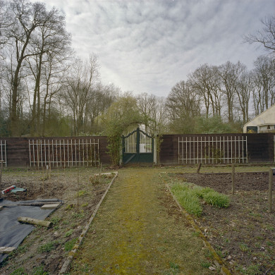 HOUTEN SCHUTTING MET TWEE TOEGANGSHEKKEN van algemeen belang: - als voorbeeld van een karakteristieke omheining van een moestuincomplex; - vanwege de doelmatige vormgeving; - vanwege de ensemblewaarde.