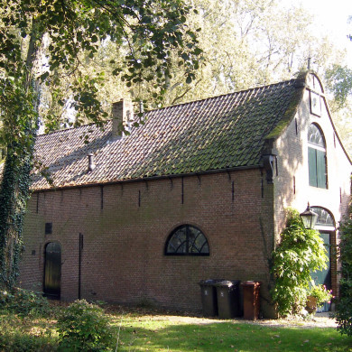KOETSHUIS. Ten noordoosten van het hoofdgebouw bevindt zich een koetshuis annex stal uit 1843, die in 1867 is voorzien van een nieuwe voorgevel. Het op rechthoekige grondslag opgetrokken bakstenen pand bestaat uit één bouwlaag onder een met Oud-Hollandse pannen gedekt zadeldak. De klokgevel aan de voorzijde heeft een houten inrijddeur met segmentvormig bovenlicht met roedenverdeling en daarboven een luik met halfrond bovenlicht eveneens met roedenverdeling. In de top een wijzerplaat en op de nokeinde een windvaan. Aan weerskanten van de inrijddeur hardstenen stootblokken. In de achtergevel een stalvenster en een rozetvormig venster. Twee getoogde deuren en een groot stalvenster in de linker zijgevel en twee stalvensters in de rechter zijgevel.