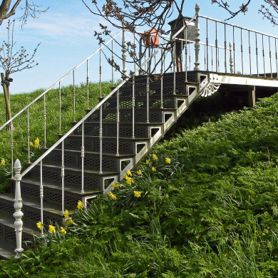 Gietijzeren STEEKTRAP over - en deels in - de Noorddijk leidend naar het polderhuis van de Beemsterpolder. De rechte trap ligt in de centrale as van het polderhuis en dateert mogelijk uit de periode rond 1880.