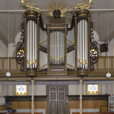 Evangelisch-Lutherse kerk met orgel met 1 klavier en aangehangen pedaal, gemaakt door P. van Oeckelen in 1868, gaaf bewaard gebleven en karakteristiek voor het werk van deze maker in de zestiger jaren van de 19de eeuw.