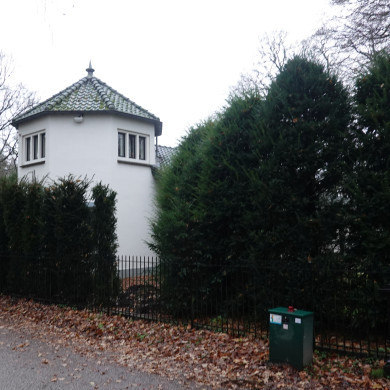 TUINMANSWONING 'DE KOEPEL' onderdeel 7. Gelegen aan het begin van de oprijlaan een uit 1855 daterende tuinmanswoning. Het witgepleisterde pand bestaat uit een rechthoekig bouwdeel van één bouwlaag onder een met Hollandse pannen gedekt overstekend zadeldak en een torenvormig achthoekig bouwdeel van twee bouwlagen onder een met Hollandse pannen gedekt octagonaal tentdak. In het achthoekige bouwvolume bevinden zich op de verdieping enkele drielichtvensters. In de langsgevel aan de noordzijde bevindt zich de hoofdingang.