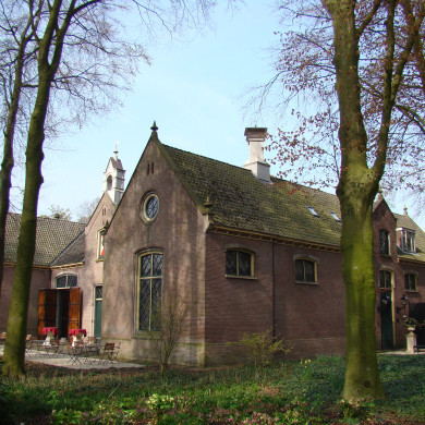 KOETSHUIS. Het koetshuis is in 1857 door de architect Elie Saraber ontworpen en omvat een groot en klein koetshuis met tuigkamer met bedstede, een paardenstal en woningen. Het op H-vormige grondslag opgetrokken complex bestaat uit één bouwlaag op een geschilderde bakstenen plint van een halve meter hoog met rollaag, onder een met gesmoorde Hollandse dakpannen gedekt zadeldak. De vensters en deuren zijn voorzien van natuurstenen profileringen. De topgevels zijn afgewerkt door natuurstenen afdekplaten en ornamenten (pinakels). Centraal in de voorgevel (oost) bevindt zich een toegangsdeur met rechthoekig bovenlicht voorzien van ruitvormige roedenverdeling daarboven een tuitgevel met een venster. Op het dak staat een houten klokkentorentje. De deur wordt geflankeerd door twee houten inrijdeuren met ijzeren beslag en een segmentvormig bovenlicht met daarin een ruiten roedenverdeling. De vooruitspringende zijarmen, waarin links de tuigkamer met bedstede en rechts de paardenstal zijn ondergebracht, kennen een identieke opbouw gevormd door een T-venster met ruiten roedenverdeling, daarboven een roosvenster met roeden en in de top twee rechthoekig uitgespaarde nissen. De overige gevels kennen een onregelmatige venster- en deurindeling. Het midden van de zuid- en noordgevel wordt onderbroken door een tuitgevel onder een zadeldak. Tegen de zuidmuur van de binnenplaats bevindt zich, tussen de inrijdeuren, een hardstenen waterpomp met een trog. In 1951 is tegen de westgevel een woning gebouwd.