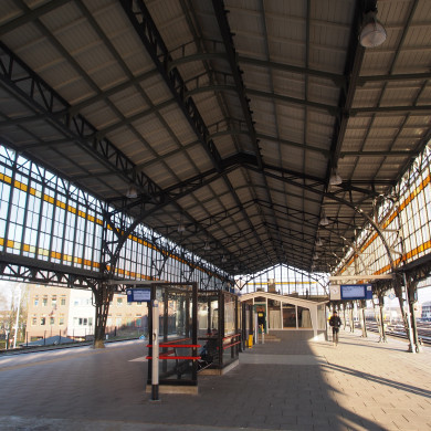 PERRONOVERKAPPING uit 1899 van architect G.W. van Heukelom, bij het na-oorlogse station van Hengelo.
