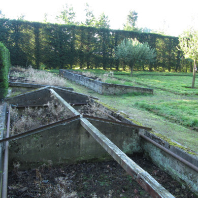 In het noorden van het rechthoekige afgesloten moestuin achter het koetshuis, liggen drie bakstenen koude bakken op rechthoekige grondslag. De laat 19de-eeuwse bakken zijn van gepleisterde baksteen en worden middels dwarsmuurtjes in respectievelijk vier, vijf en zes compartimenten verdeeld. De glazen oplegramen zijn (gedeeltelijk) nog aanwezig.