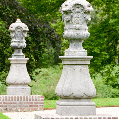 - hoedanigheid van authentieke vroeg achttiende-eeuwse decoratieve tuinsieraden in het historiserend concept van romantisch landschapspark met classicistisch hoofdgebouw uit 1938.