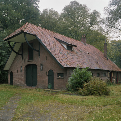BOERDERIJ VAN HET HALLEHUISTYPE onder overstekend afgewolfd zadeldak met rode Hollandse pannen gedekt. De overstekende wolfeinden steunen aan de voor- en achtergevel (N en Z) op korbelen. De gevels zijn boven een plint van bruingrijze baksteen opgetrokken in een bruine baksteen. De deur onder bovenlicht in de noordgevel vormt de hoofdentree tot het woonhuisgedeelte van de boerderij. Rechts van deze ingang twee vensters met bovenlicht en luiken met rode zandloper op een witte ondergrond. De buitenste begane grondvensters zonder bovenlicht zijn behangen met dezelfde luiken. Het zoldervenster onder het overstekende wolfeind heeft een roedenverdeling. In de zijgevels (O en W) van het woonhuisgedeelte vergelijkbare vensters en deuren. De oostgevel van het bedrijfsgedeelte is uitgerust met een deur tussen zijlichten en links daarvan lage mestdeurtjes onder segmentbogen tussen getoogde stalvensters. In de westgevel enkele getoogde stalvensters. In de achtergevel (Z) aan weerszijden van de baander die onder een segmentboog geplaatst is, getoogde stalvensters- en deuren. In de geveltop onder het overstekende wolfeind een hooiluik. Op de nok en in het oostelijke dakschild gemetselde schoorstenen. In de dakschilden drie eenvoudige dakkapellen onder overstekende lessenaardaken.