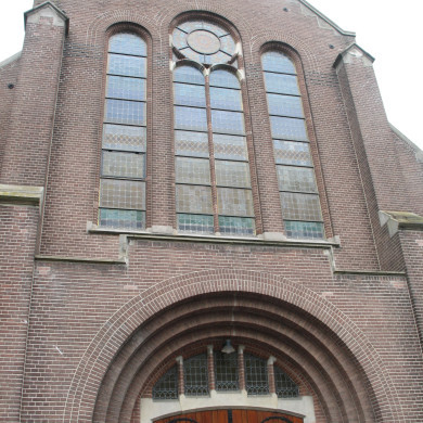 Gereformeerde KERK naar ontwerp van Tjeerd Kuipers in 1911-/1912 in Berlagiaanse-stijl gebouwd. De architect Tjeerd Kuipers liet zich zeer inspireren door H.P. Berlage zoals te zien is aan de vlakke muurbehandeling, rondboogvenstersramen en natuurstenen elementen. Kuipers was de meest productieve kerkontwerper vooral voor gereformeerde kerken voor de periode 1850-1940. De kerk is gesitueerd op de hoek van twee straten aan de rand van het oude centrum.
