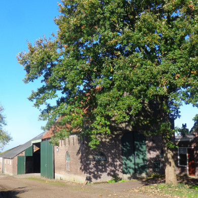 Boerderij dwarshuis, dak met riet gedekt, grotendeels 17e eeuw.