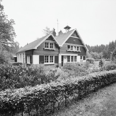 - de elementen uit de Chalet-stijl, zoals de gevelbeschotten, overstekende goot- en daklijsten en de geprofileerde waterlijsten