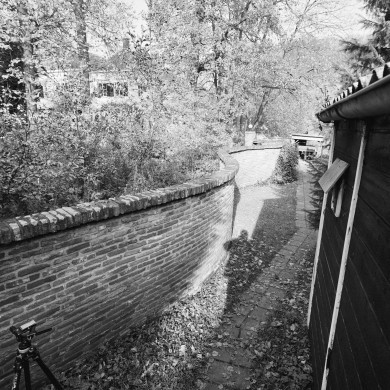 BRUGGETJE. In de zuidoosthoek over de buitensingel ligt een 19de- eeuws boogbruggetje met bakstenen keermuren, die schuin aflopen en natuurstenen zijstukken.