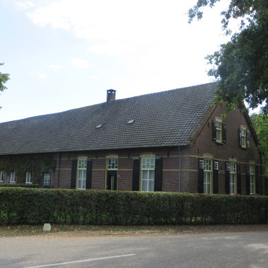 LANGGEVELBOERDERIJ in 1920 gebouwd in ambachtelijk-traditionele stijl als gemengd bedrijf voor de agrariër A.J. Raaijmakers. Ze is gedeeltelijk gebouwd op de fundamenten van een oude boerderij, die door brand werd verwoest. De boerderij heeft een rechthoekige plattegrond met de lange voor- of oostgevel aan de Laan ten Boomen. De noordwestgevel ligt aan de Heesvenstraat. De boerderij ligt vrij op het perceel. Aan de zuidoostkant een nieuwe aanbouw aan de stal. Op het erf een voormalige paardenstal annex karrenloods nu schuur en een bakhuis.