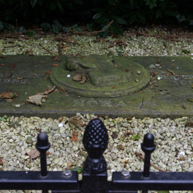 GRAFMONUMENT opgericht in 1906 ter nagedachtenis aan de hond Nora geboren in 1893.