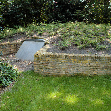 De omstreeks 1860 onder een ronde heuvel aangelegde grafkelder is begroeid met struiken en wordt begrensd door een lage, gele bakstenen muur. De ingang van de kelder aan de noordwestzijde is afgedekt met een gladde natuurstenen dekplaat. Een trap leidt naar een tongewelf van 4.50 meter lang, 2.75 breed en 2.00 meter hoog.