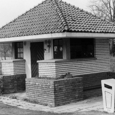 Ontwerper ervan was M.B. van Dorth, de gemeentearchitect. Het is in de Interbellum-stijl gebouwd, waarbij elementen van het Zakelijk Expressionisme zijn toegepast. Het blokvormige gebouwtje, dat in oorsprong open was, is nu van een deur voorzien en wordt voor de gasreducering gebruikt. Het toegangsmuurtje is rechts ervan geplaatst en wordt gevormd door drie delen: twee stukken links en rechts van de achtergevel van de Abri met twee hoekpijlers, een klein deel aan de linkerzijde van de laan naar het ziekenhuis en een groter L-vormig deel aan de rechterzijde van de laan, beide door hoekpijlers afgesloten.