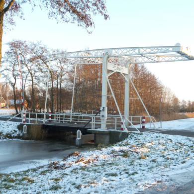 IJzeren OPHAALBRUG met een hameipoort van geklonken ijzer, bestaande uit twee hameistijlen (DIN-balken), gekoppeld door een geklonken dwarsbalk waarop het bouwjaar 1930; vakwerkbalanspriemen met ijzeren spanwerk en gewichtkoker, geklonken langsschoren steunend op gietstukken, dubbele trekstangen; aan de noordelijke hameistijl een ijzeren bedieningskast met heugelstang. Het houten brugdek met een ijzeren grendel op ijzeren INP-liggers, heeft ronde ijzeren leuningen (twee regels) verbonden door twee kettingen; op de leuningen een ijzeren driehoeksconstructie. De brug rust op betonnen landhoofden en heeft rond de noordelijke hameistijl een betonnen plateau met ijzeren hek van hoekprofielen. Op de overgang van brug- naar wegdek ijzeren leuningen met regels en stijlen van hoekprofiel.