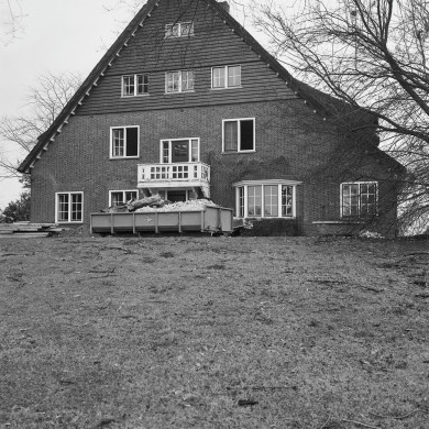 De zijgevels hebben in het dakvlak twee dakkapellen onder lessenaardak. De naar de oprijlaan gerichte zijde heeft onder meer een deur, die toegang geeft tot de bijkeuken. Het deel onder de keuken is onderkelderd. De andere zijgevel bezit openslaande tuindeuren en een veranda.