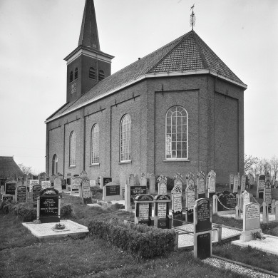 De KERK is een zaalkerk met een gereduceerd torenlichaam. Rond de oost-west georiënteerde kerk is het kerkhof omgeven door een beukenhaag, met uitzondering van de noordzijde waar de uitbreiding van het kerkhof door een coniferenhaag van het oorspronkelijke deel is gescheiden. De kerk ligt enigszins geïsoleerd omdat de dorpsbebouwing zich heeft verplaatst naar het vaarwater de Nieuwe Vaart. Desondanks is gebouw een essentieel onderdeel van de dorps-lintbebouwing; het is daarin uitzonderlijk door het bouwvolume en de verhoogde ligging. De kerk staat op dezelfde plaats als het middeleeuwse bedehuis dat in 1864 werd afgebroken en door de huidige kerk in eclectische trant werd vervangen. Ter herinnering aan deze gebeurtenis is een gedenksteen boven de westelijke toegangsdeur ingemetseld met het opschrift: ANNO 1864 (...) IS DE OUDE KERK TE DEZER PLAATSE AFGEBROKEN EN DIT GEBOUW GESTICHT WAARVAN DE EERSTE STEEN (...)/GELEGD OP DEN 11 JUNIE. Het werk werd uitgevoerd door de timmerlieden Van der Sluis, Posthuma en Egbert Roel Kuiper, de laatste afkomstig uit Gorredijk. Het schilderwerk werd uitgevoerd door H. Sterringa. De inwijding van het nieuwe gebouw vond plaats op 11 december 1864.
