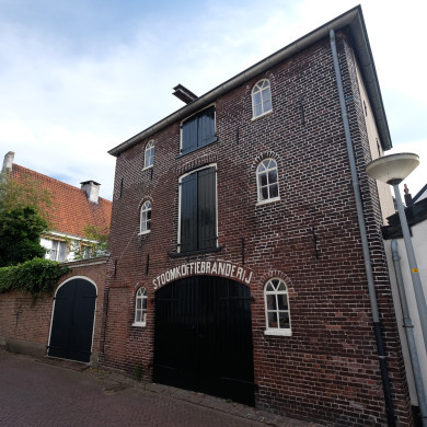 STOOMKOFFIEBRANDERIJ gebouwd in 1910 door winkelier A. van de Bold als een klein, eenvoudig bedrijfsgebouw met een jufferkap en een houten hijsradinstallatie. Het voormalige fabriekje, dat in 1924 van stoom op elektriciteit overging, staat in de achtertuin van de Koepoortstraat 25, de voormalige kruidenierswinkel van W. van de Bold. De voorgevel ligt in de aaneengesloten oostelijke gevelwand van de Heilige Geeststeeg, een straat met voormalige stadsboerderijen, kleine bedrijfjes, schuren e.d. in de oude stadskern.