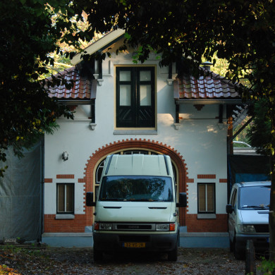 Voormalig KOETSHUIS, behorende tot het villacomplex "Jorullo", gebouwd in de Art Nouveau stijl rond 1901. Het voormalige koetshuis is terugliggend gesitueerd aan de oostzijde van het terrein met de voorzijde aan de H.J. Schimmellaan. Twee houten PIJLERS van het oorspronkelijke toegangshek zijn nog aanwezig aan de straatzijde.