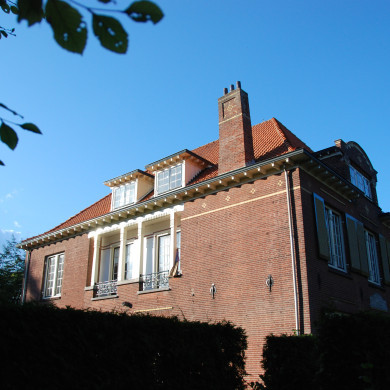 LANDHUIS, "OP DEN AKKER", gebouwd in het laatste kwart van de 19de eeuw in eclectische stijl, in 1902 in nieuw-historiserende trant verbouwd door K.P.C. de Bazel voor de schrijver en kunstenaar Jan Veth en in 1910 door dezelfde architect met een atelier uitgebreid. Bij de verbouwing bleef een gedeelte van de west- en zuidgevel staan, zichtbaar door de toepassing van andere bakstenen, metselverband en metselspecie. Het landhuis is gesitueerd op een groot terrein tussen de Koningslaan en de Parklaan.