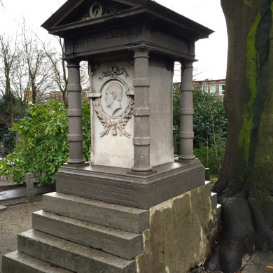 De 19de-eeuwse parkaanleg is gebaseerd op de Engelse landschapsstijl, de vroeg 20ste-eeuwse uitbreiding is meer geometrisch van karakter. Er is sprake van een duidelijke samenhang tussen de parkaanleg en de situering van graftekens en architectuur. De meeste beschermde objecten liggen in het 19de-eeuwse gedeelte van de begraafplaats, waarvan de oudste aanleg een protestants, Joods en rooms-katholiek gedeelte bevat. Het oudste object is hier de houten kapel, gebouwd in 1831 in neogotische trant. De Joodse begraafplaats ligt op een schiereiland en bevat een klein bouwvolume temidden van evenwijdige rijen graftekens. In ouderdom met de aanleg en eerste uitbreiding overeenkomend zijn de vier identieke hardstenen pijlers aan de Schoterweg die thans de twee zij-ingangen van de begraafplaats vormen. Dicht bij de Schoterweg staan de grafstenen van de beide Zochers, respectievelijk uit 1870 en 1915, alsmede het in 1876 geplaatste neo-classicistische monument boven het graf van C. Outshoorn. Neo-classicistisch van karakter is ook het mausoleum dat net als de aan de zijde van de Schoterweg gelegen kleine materiaalbewaarplaats werd opgetrokken in de uitbreiding van 1887. Over de waterpartij die de genoemde uitbreiding van de oudste aanleg scheidt, werd kort na 1887 de rustieke gietijzeren brug geplaatst. De gemetselde pijlers van de hoofdingang en de houten abri maken deel uit van de uitbreiding van 1916 ten westen van de voormalige Achterweg, die bij deze uitbreiding werd getransformeerd tot haaks op de nieuwe hoofdingang aan de Kleverlaan gelegen oprijlaan.