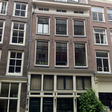 PAND met gevel onder rijk gesneden lijst met dakkapel; gesneden pui, deur en snijraam (plm 1800).