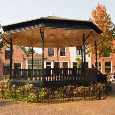 In 1924 gebouwde houten MUZIEKTENT, gelegen aan de Westkolk. De muziektent valt binnen het beschermde dorpsgezicht Spaarndam.