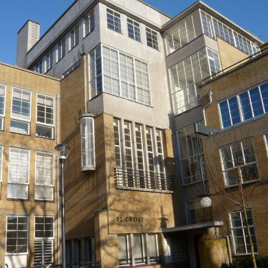 Door D. Greiner ontworpen SCHOOLGEBOUW dat in 1935 werd gebouwd als uitbreiding van de in 1903 door J.F. Hamersfeld en S. Roog gebouwde Haarlemse Huishoud- en Industrieschool die bij de uitbreiding door Greiner werd verbouwd. Het schoolgebouw wordt begrensd door de Schneevoogtstraat (noord), de Kamperstraat (oost), de Bakkerstraat (zuid) en de Voorhelmstraat (west). Het gebouw staat alleen aan de zuid- en westzijde geheel vrij. Aan de overige zijden staat het gebouw merendeels achter woningen uit circa 1900. Van het gebouw uit 1903 bleven alleen delen van de voormalige voorgevel aan de Schneevoogtstraat en enige achterliggende ruimten bewaard. Deze bebouwing werd in de nieuwbouw geïntegreerd. Het gezicht van de school wordt hoofdzakelijk bepaald door de nieuwbouw uit 1935 in Zakelijk-Expressionistische trant. De strakke gevelcompositie en de door het betonskelet mogelijk geworden toepassing van grote vensteroppervlakken zijn gecombineerd met decoratieve elementen van de Amsterdamse school.