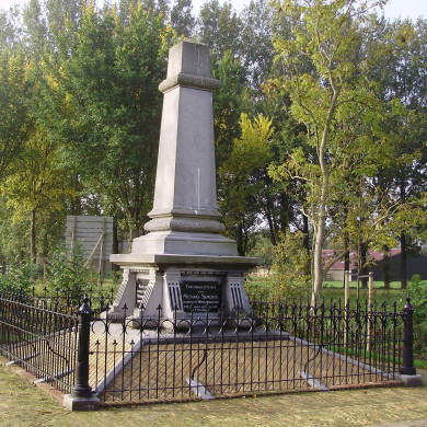 Monument uit 1879 bestaande uit een gedenknaald met twee hekwerken, gedenksteen, omgracht terrein en laan, van algemeen belang: