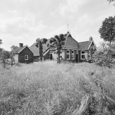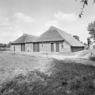 KOP-ROMPBOERDERIJ bestaande uit een VOORHUIS (1914), HOOFDSCHUUR (omstreeks 1600) en aangebouwde BIJSCHUUR (1914), alle opgetrokken in een Ambachtelijk-traditionele bouwtrant.