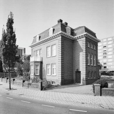 Villa met twee bouwlagen onder gebroken en gewelfde schilddaken met leien in schubdekking. Twee nokschoorstenen, dakkapellen en bakgoten op consoles. Gevels van baksteen metselwerk in halfsteens verband. Donker getinte geprofileerde bakstenen plint met rollaag. Bloktand hoeklisenen. Rechthoekige houten kruiskozijnen, zes- en achtruits bovenlichten. Strek en hardstenen dorpels. Links in voorgevel vijfzijdige erker met balkon, voorzien van een houten balustrade. Dubbele balkondeuren met aan weerszijden smal venster. Rechts in de gevel per laag twee vensters. Op het dak twee dakkapellen. Rechterzijgevel: linker deel blind met dakkapel, in midden uitspringend trappenhuis, rechts met één venster in eerste laag en dakkapel. Entree met authentieke houten deur in de linkerzijgevel van het vooruitspringende gedeelte van de rechterzijgevel. Trappenhuis in twee en halve laag in drie traveeën. Eerste laag met traliewerk voor de vensters, tweede laag met bovenlicht en bovenste laag met lage vensters. Geheel rechts uitbouw van één laag met houten deur en bovenlicht. Over gehele breedte van achtergevel een uitbouw in één bouwlaag met plat dak. Links twee vensters, rechts dubbele tuindeur met aan weerszijden vensters. In tweede bouwlaag achtergevel vier vensters. Linkerzijgevel met bloktandlisenen verdeeld in twee helften. In linkerhelft in eerste bouwlaag een venster. Op het dak twee dakkapellen. Lage bakstenen erfscheiding met kolommen en ezelsrug. Het INTERIEUR is redelijk in tact zowel qua indeling als uitmonstering. Enkele nieuwe doorgangen gemaakt, wel de authentieke houten paneeldeuren. Entree met kleine hal met marmer tegels in zwart en wit, glas-in-lood panelen in geel en paars, tussendeur met glaspanelen. Centrale hal met authentieke trap en lambrisering, geornamenteerde trapleuning. In woonkamer tussendeur en wand met glas-in-loodpanelen naar serre: gebrandschilderd glas met bloemen, vruchten en oud-Hollandse motieven; serre-vloer met tegels. Authentieke parketvloer.