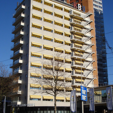 KANTOORGEBOUW, genaamd Erasmushuis, van de Hollandsche Bank-Unie aan de oostzijde van de Coolsingel, tussen Bulgersteyn en Churchillplein. Gebouwd in 1939-1940 in functionalistische stijl naar ontwerp van W.M. Dudok. Met enkele andere gebouwen in het centrum van Rotterdam heeft dit gebouw de bombardementen van de meidagen 1940 overleefd.