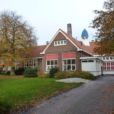 SCHOOLGEBOUW ontworpen in 1920 in een regionale Amsterdamse Schoolstijl met Engelse landhuisstijl elementen door architect P.J. Hamers uit Bussum, die veel heeft gebouwd in Utrecht. Opvallend aan de lagere school is dat elk klaslokaal naast de hoofingang een eigen entree heeft. Na de oorlog is aan de school links achter een kleedruimte vastgebouwd, is de overdekte speelruimte aan de achterzijde dichtgezet en is aan de linker lange vleugel rechts achter een berging aangebouwd. Al deze aanbouwen komen wegens te geringe ouderdom niet voor bescherming van rijkswege in aanmerking. Sinds 1996 is de school in gebruik voor kinderopvang en peuterspeelschool, waarvoor interne verbouwingen hebben plaatsgevonden. De groenaanleg werd ontworpen door J. Vroom.