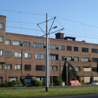 WOONFLAT 'Westzeedijk', gebouwd in 1929 naar ontwerp van F.L. Lourijsen in de trant van de Nieuwe Haagse School. Het gebouw werd oorspronkelijk opgezet als woonhotel met centrale voorzieningen, waaronder een schoonmaakdienst, een kluis, logeerkamers, een aantal verwarmde garages op het achterterrein en een portier in het souterrain. In de hal bevonden zich boodschappenkastjes naast de voordeur, waarin leveranciers boodschappen konden deponeren, maar waar men ook 's avonds de schoenen kon plaatsen om ze de volgende morgen gepoetst weer aan te treffen. Hoewel iedere woning was voorzien van een kleine keuken kon men maaltijden bestellen bij de centrale keuken in het souterrain.