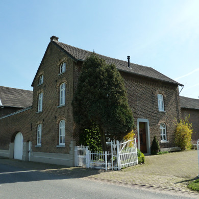 GESLOTEN HOEVE in traditioneel-ambachtelijke stijl, XIX B. Vrijstaand gesitueerd tegen de zuidelijke helling van het Geleenbeekdal. De hoeve vormt aan de westzijde de beëindiging van de lineaire nederzettingsstructuur langs de zogenaamde Hegge. De bedrijfsaanbouwen op L-vormige plattegrond aan de zuidzijde van de gesloten hoeve, bestaande uit een open stalling met golfplaten dakbedekking waarop haaks een aantal betonnen veestallen, zijn UITGESLOTEN van bescherming.