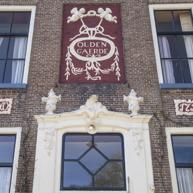 HOOFDGEBOUW (Oldengaerde). Het in oorsprong vroeg-15de-eeuwse huis is in het begin van de zeventiende eeuw vergroot met twee ondiepe zijvleugels, die haaks op het hoofdgebouw staan en in 1717 voorzien van een nieuwe voorgevel van pilasterarchitectuur in classicistische stijl. Het op rechthoekige grondslag opgetrokken bakstenen huis bestaat uit twee bouwlagen (achterhuis één bouwlaag) onder een met geglazuurde Friese pannen gedekt, afgeplat schilddak met gemetselde schoorstenen op de nokeinden (bij een verbouwing in de negentiende eeuw is het dak verlaagd, zijn de schoorstenen verplaatst naar de hoeken en is de frontonversiering vervangen door een houten timpaan). Aan weerszijden van het rechthoekige bouwblok grenzen jongere verdiepingloze vleugels (mogelijk laat-18de/vroeg-19de-eeuw) onder een lessenaarsdak met aan de voorzijde een sierlijke daklijn, kwart hol- en bol gezwenkt, met zandstenen schouders en hoekblokken (XIX). Op het linker dakschild een klokje, identiek aan dat op het bouwhuis. De rechter zijgevel heeft twee meerruitsvensters in de vleugel en een dergelijk venster op de verdieping; tegen de linker zijvleugel staat een rechthoekige oranjerie (laat 18de/vroeg-19de eeuw) van handvorm baksteen onder een zadeldak; in de zuidgevel vier grote meerruitsvensters, op de verdieping een zesruitsvenster met persiennes. De symmetrische negen traveeën brede voorgevel kent een geleding van gemetselde pilasters van de kolossale orde, voorzien van geschilderde natuurstenen basementen en Ionische kapitelen. In het drie traveeën brede middenrisaliet, dat wordt bekroond door een driezijdig fronton, bevindt zich de dubbele toegangsdeur met bovenlicht gevat in een omlijsting in Lodewijk XV-stijl. Boven de entree is een rechthoekige spaarnis waarin twee in reliëf uitgebeelde engelen (1717?) en een versierde cartouche (1717?) met daarin geschilderd de naam 'OLDENGAERDE'. Aan weerszijden van de toegangsdeur staan twee in steen uitgehouwen wapenschilden van Cornelis baron van Dongen en zijn vrouw Johanna Angnis baronesse van Wijenhorst. Aan weerszijden van de hoofdtoegang staan een kanon (1663), een stoeppaal, een bankje en een gedecoreerde sokkel. De gevel is ingedeeld door acht- en zesruitsvensters, met boven de vensters op de begane grond een geschilderd zandstenen uitgehouwen festoen, en boven de vensters van het middenrisaliet de datum 'ANNO' '1717'. In de rechter vleugel bevindt zich een getoogde dubbele inrijdeur (koetshuis), in de linker vleugel een getoogd meerruitsvenster. De zeven traveeën brede achtergevel heeft achtruitsvensters met binnenluiken en in het midden een eenvoudig omlijste tienruits dubbele deur; ervoor een drietreeds zandstenen stoep; erboven een dakkapel onder een zadelkapje met windveren. Twee keldervensters. In de zijvleugels een meerruitsvenster en in de gevel van de oranjerie een dubbele deur van kraaldelen, voorzien van een halfrond bovenlicht met spaakroeden en in de top een ruitvormig venster. In het INTERIEUR is onder meer van belang de hal met marmeren vloer en kwartslag gedraaide trap met houten 'platte' balusters en gemarmerde treden, deuromlijsting in Lodewijk-XV-stijl, de grote buffetkast, marmeren schouw met stucwerk en stucplafond met florale motieven; de voorkamer met marmeren schouw met stucwerk en stucplafond met florale motieven; de keuken met balkenplafond, plavuizen vloer, twee 19de-eeuwse glazenkasten en een eenvoudige haardplaats met witte betegeling; de provisiekelder met plavuizen vloer. In het algemeen zijn de vensters behangen met vouwblinden en voorzien van een zitbankje; de deuren van brede delen zijn deels gehout.