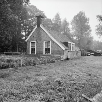 DAGLONERSWONING. Ten noorden van het hoofdgebouw staat, even buiten de singel, een vermoedelijk vroeg-19de-eeuwse bakstenen daglonerswoning. Het op rechthoekige grondslag opgetrokken pandje bestaat uit één bouwlaag onder een met rode Hollandse pannen gedekt en aan een zijde doorgetrokken zadeldak; nokschoorsteen aan voorzijde. De achtergevel, die iets is uitgebouwd, is vernieuwd en heeft een indeling van drie staldeuren, een stalvenster en een klein topvenster. In de zuidgevel een houten toegangsdeur met links een vierruitsvenster en rechts een negenruits schuifvenster. In de kopse gevel aan de straatkant twee zesruitsvensters, in de noordgevel een (nieuwe) dakkajuit; rechts daarvan een staldeur en een stalvenster.