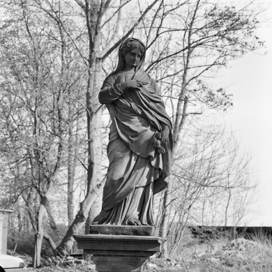 FLORABEELD. Oorspronkelijk stond centraal op het voorplein tussen huiseiland en tuinmanshuis een laat 18de-eeuws tuinbeeld voorstellende een vrouwenfiguur met een doek over het hoofd en een fraai gedrapeerd kleed aan. In haar linkerhand draagt zij enkele bloemen. Het geheel is uitgevoerd in Bentheimer zandsteen. Verfresten toonden aan dat het beeld ooit beschilderd was. Sinds de herinrichting van 1999-2000 staat het beeld in het midden van de siertuin ten westen van het eiland. Het is opnieuw beschilderd.
